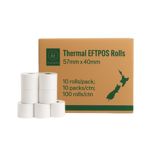 Looking for the best EFTPOS rolls 57×40 wholesale? Hygienetic provides premium 57 mm × 40 mm thermal paper rolls at unbeatable bulk prices. Designed for busy retail outlets, cafés, restaurants, and service counters in Auckland, Wellington, Christchurch, Hamilton, and Tauranga, these rolls fit all major POS systems and EFTPOS terminals, including Ingenico, Verifone, PAX, and Smartpay devices.