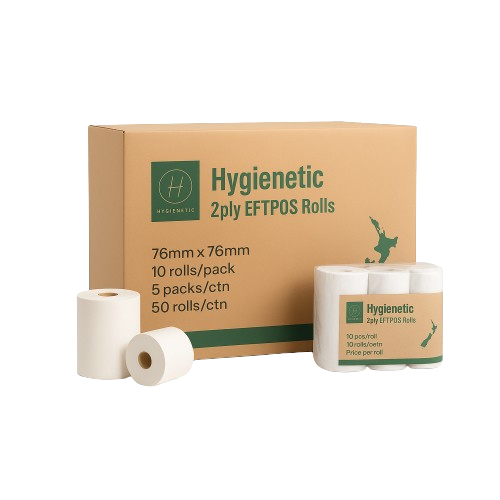 Are you looking for eftpos rolls 76 x 76 that combine large capacity with clear, durable prints? First, Hygienetic’s 2-ply thermal rolls are engineered for high-volume systems. Additionally, they serve retailers across Aotearoa perfectly. Moreover, cafés and hospitality venues love our crisper dual-copy receipts.