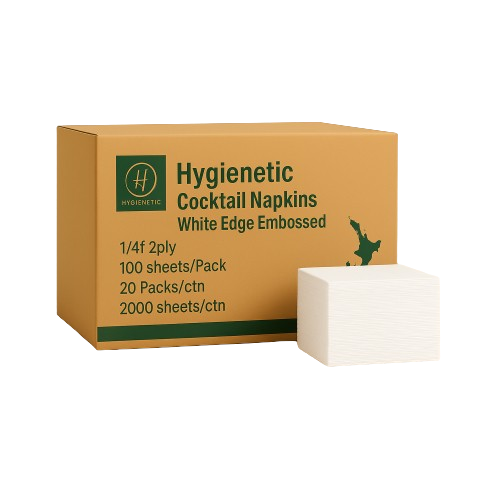 Are you searching for sophisticated white cocktail napkins that elevate your hospitality presentation? For instance, standard white napkins lack the premium appeal guests expect. However, Hygienetic’s white edge embossed cocktail napkins provide exceptional elegance and functionality. These 2-ply napkins feature refined embossed detailing and rich white color for upscale bars, restaurants, and special events. Moreover, their 1/4-fold design creates perfect presentation while maintaining superior absorbency. They also resist tearing and maintain their sophisticated appearance throughout use. Designed for premium hospitality and events, these napkins meet NZ food service standards. They come in efficient bulk packaging with **wholesale pricing** for steady supply across Aotearoa.